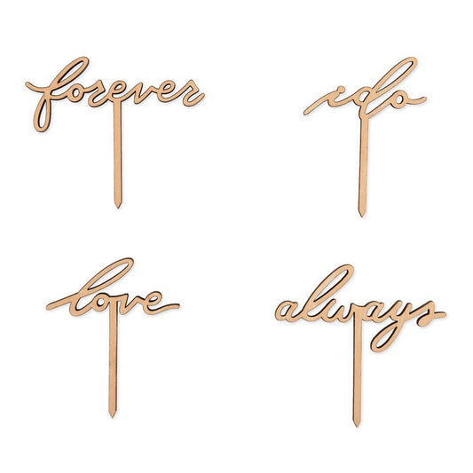 Natural Wood Cupcake Toppers - Love Collection