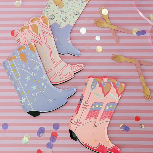 Cowgirl Boot Shaped Assorted Large Plates - 8pk