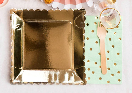 Mint Scalloped Square Party Plates 9"