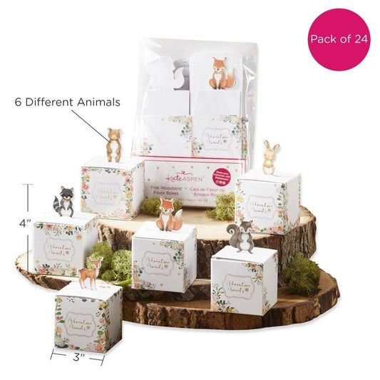 Woodland Animal Pink Floral Favor Boxes - 24pk