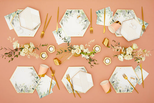 Blush & Rose Gold Decagon Floral Paper Party Plates - 8pk
