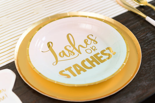 Gender Reveal 'Lashes Or Staches' 7" Paper Plates - 8 pk