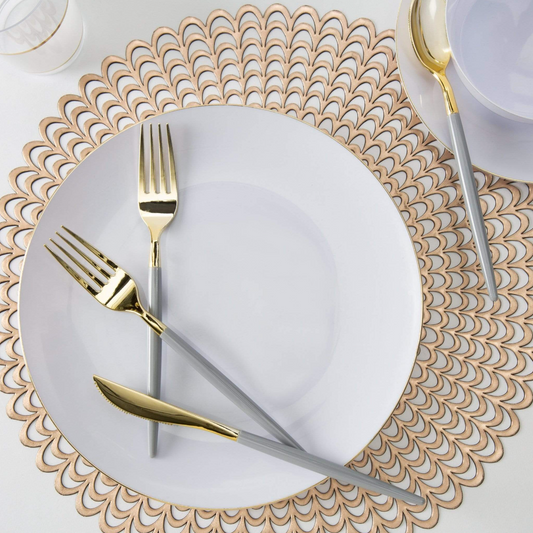 Grey & Gold Two-Tone Plastic Cutlery Set | 32 Pieces