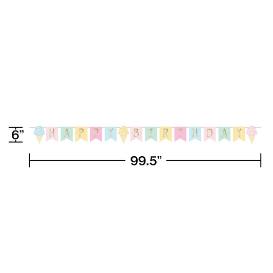 Pastel Ice Cream 'Happy Birthday' Ribbon Banner - 8ft
