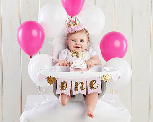 Pink & Gold Glitter Baby Girl 1st Birthday Party Kit