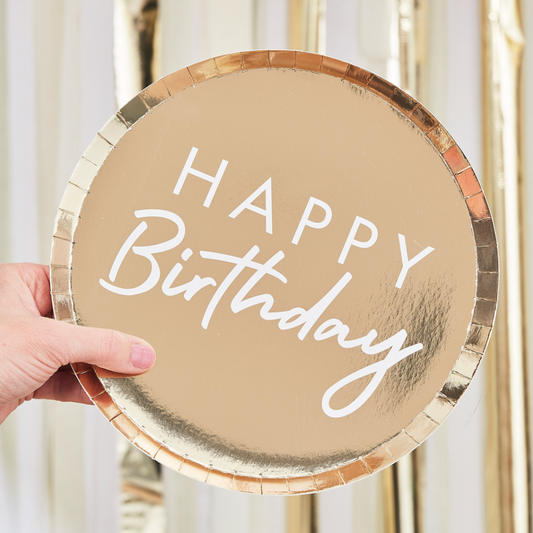 Gold Foiled Large Happy Birthday Plates - 8pk