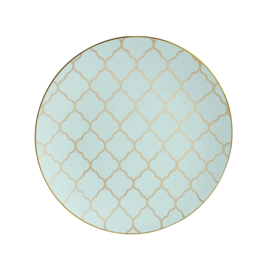 Round Mint Plastic Plates with Gold Lattice Pattern - 2 Sizes Available