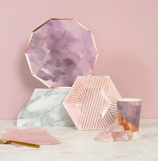 Amethyst - Pale Pink Striped Small Paper Plates 8pk
