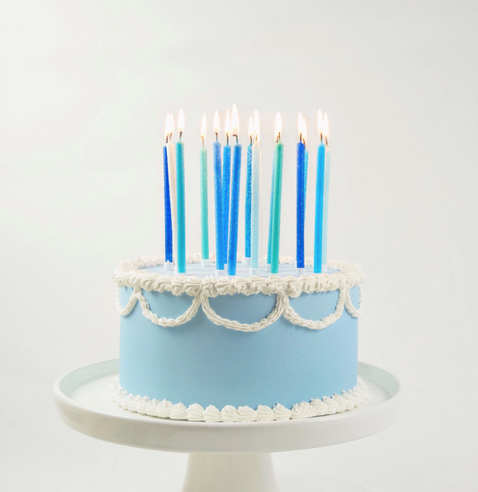 Tall Blue Gradient Glitter Birthday Candle Set - 16pk