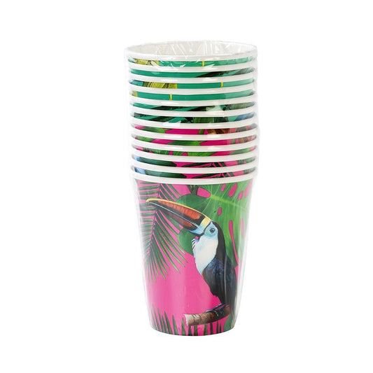 Tropical Bird Assorted Bright 12oz Paper Party Cups - 12pk