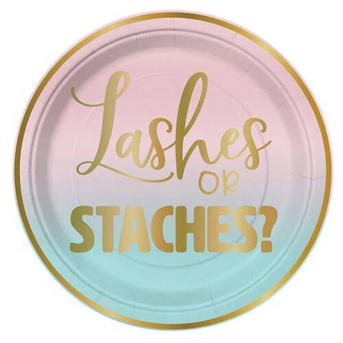 Gender Reveal 'Lashes Or Staches' 7" Paper Plates - 8 pk