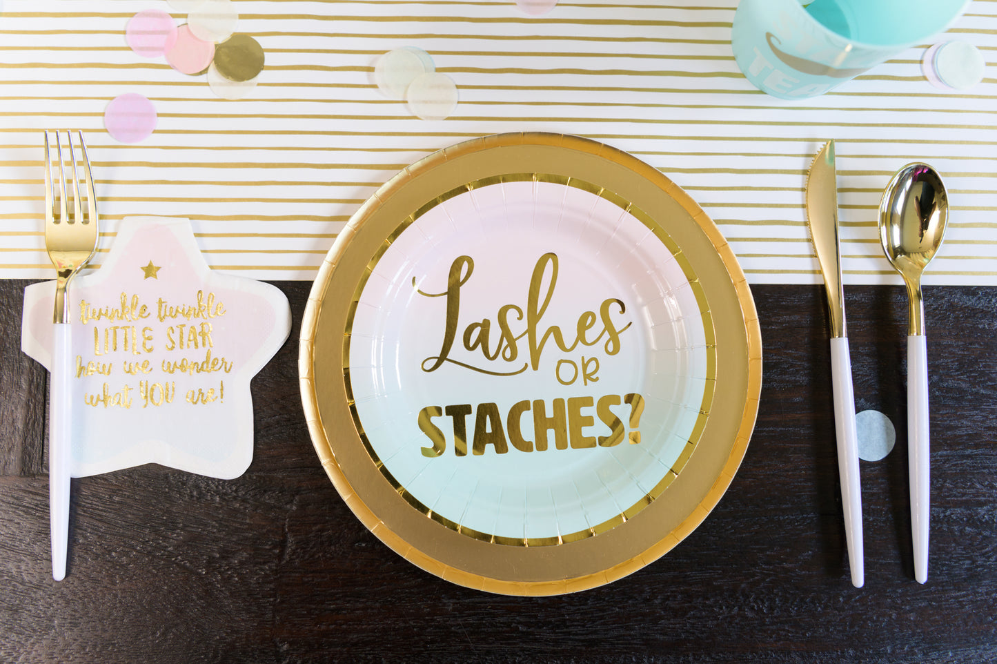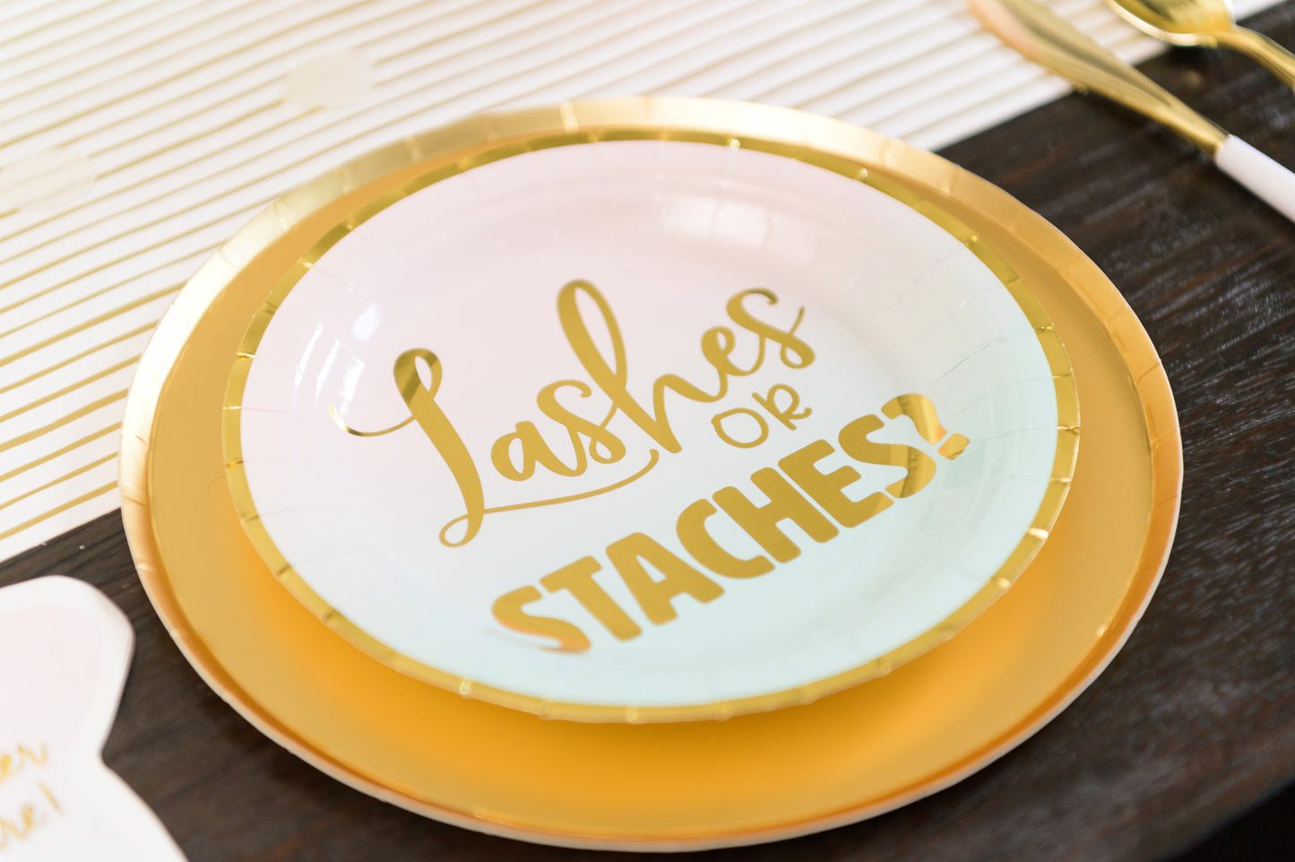 However, the party won't be complete without pairing these plates with our coordinating "Lash" or "Stache" Team Cocktail Napkin Set!