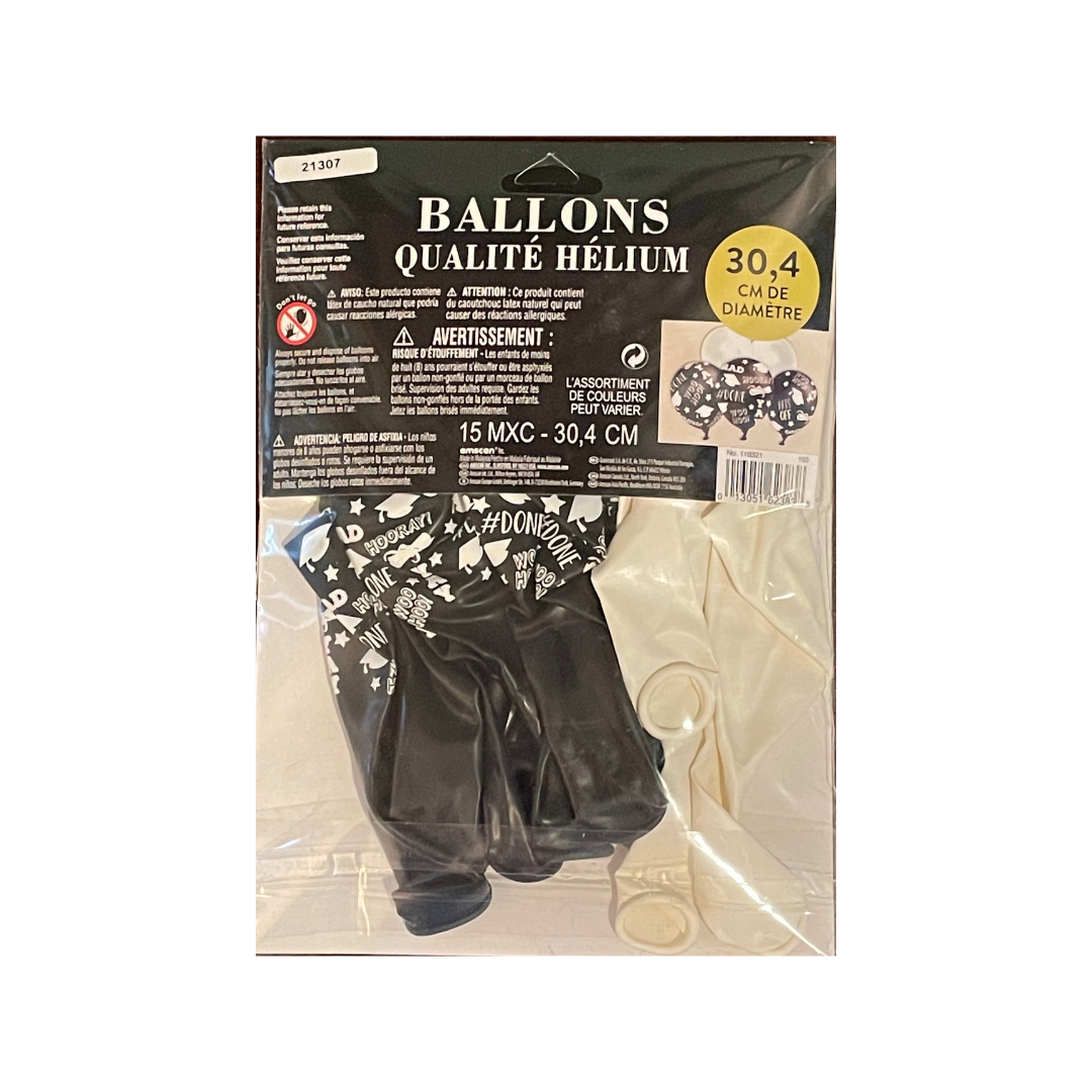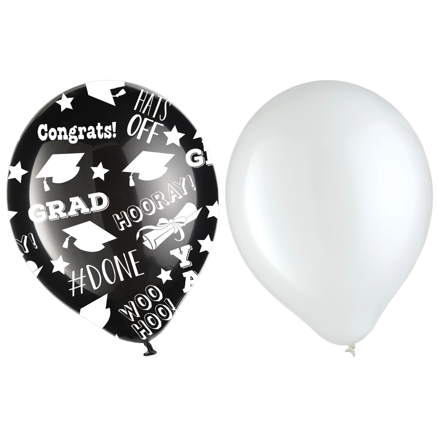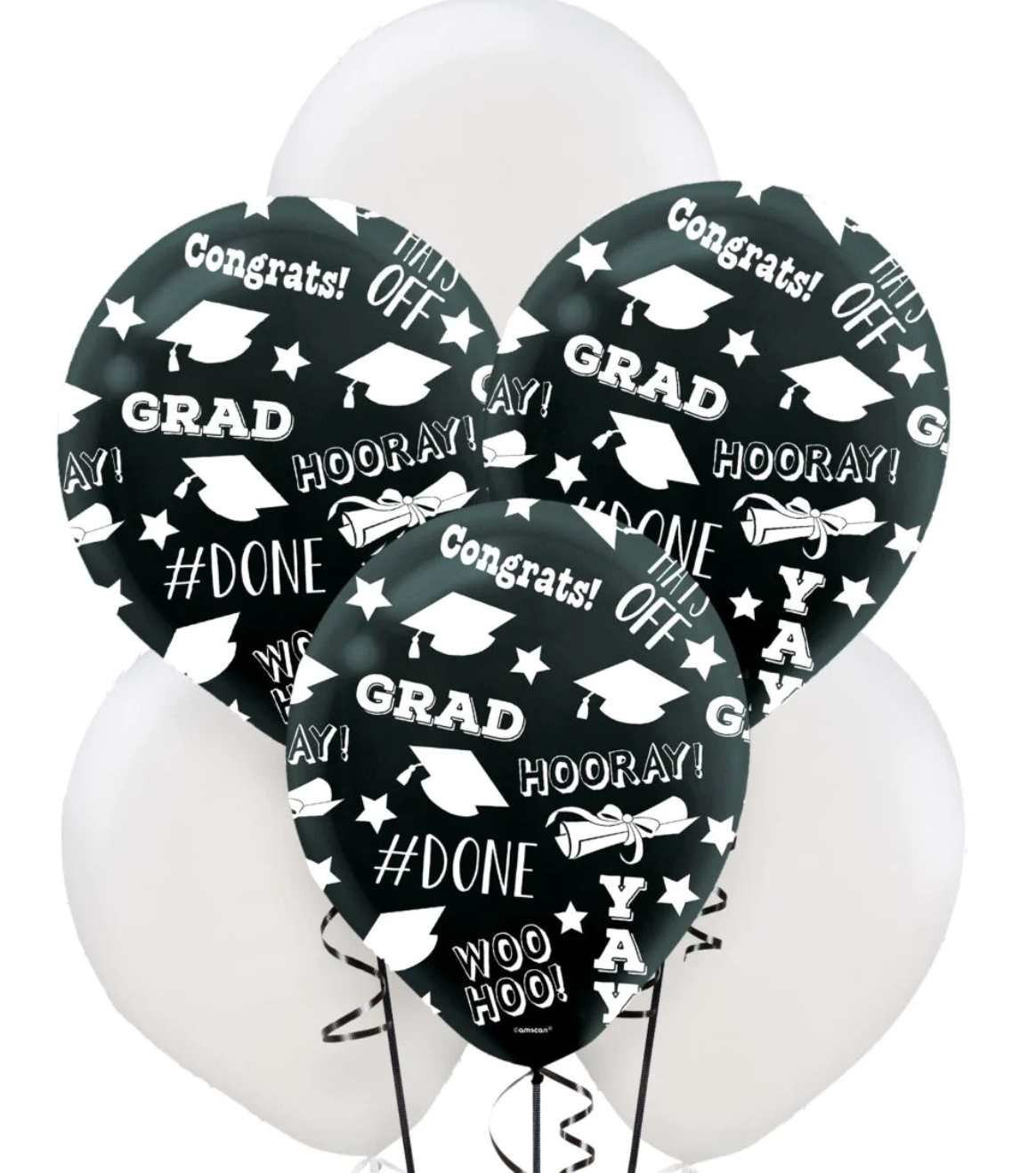 - Assorted Black Graduation Print and White Balloons