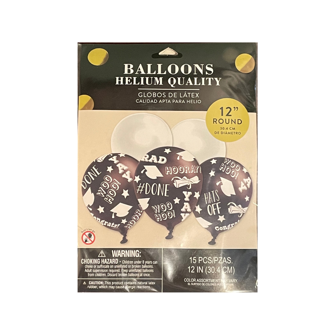 Assorted Graduation Party Latex Balloons - 15 pk