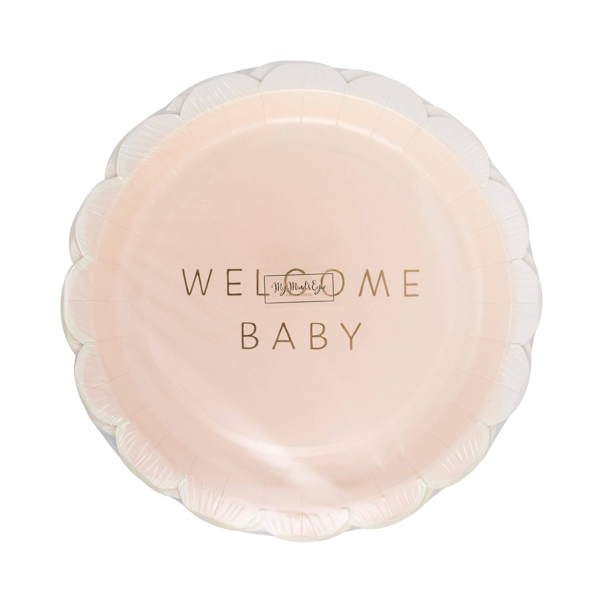 Welcome Baby Girl Pink Scalloped Paper Plates- 8pk