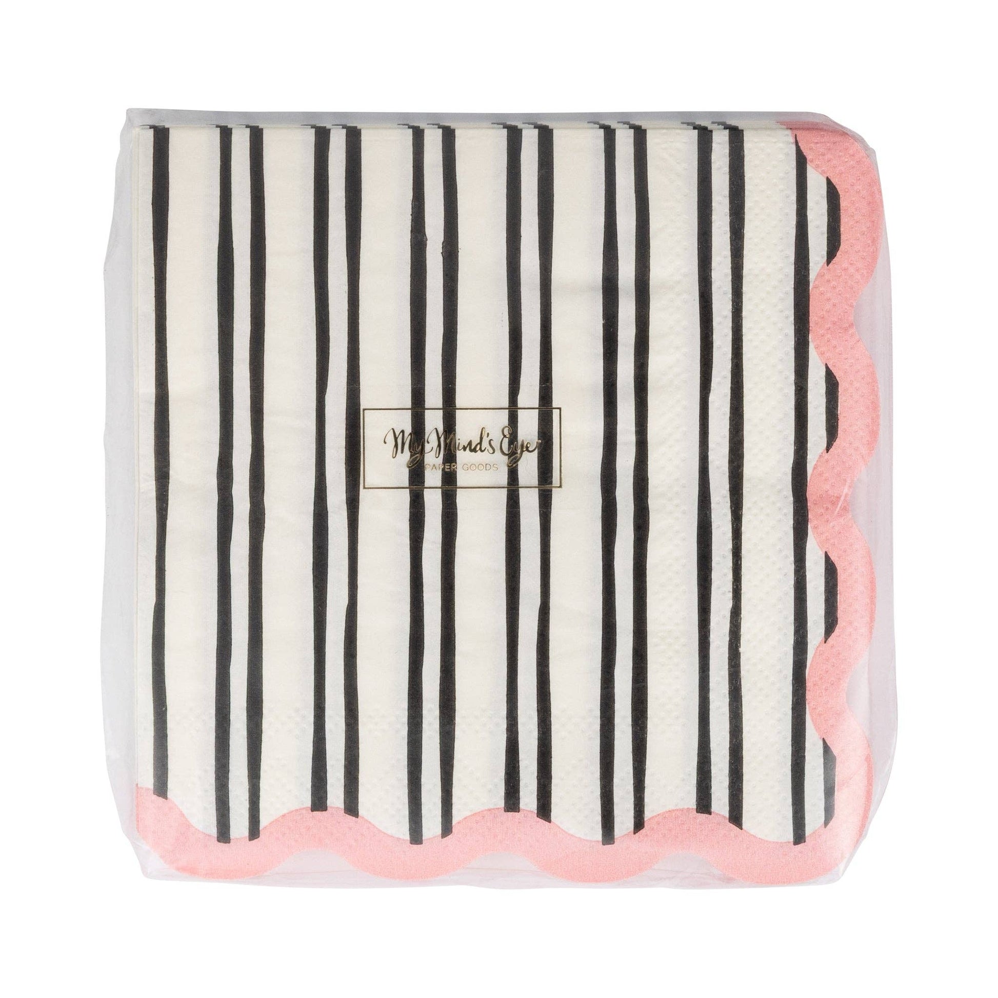 Meet your new party planning secret weapon! These absolutely chic White & Black Striped Cocktail Napkins with adorable pink scalloped edge trim are about to transform your celebrations into magazine-worthy events! ✨