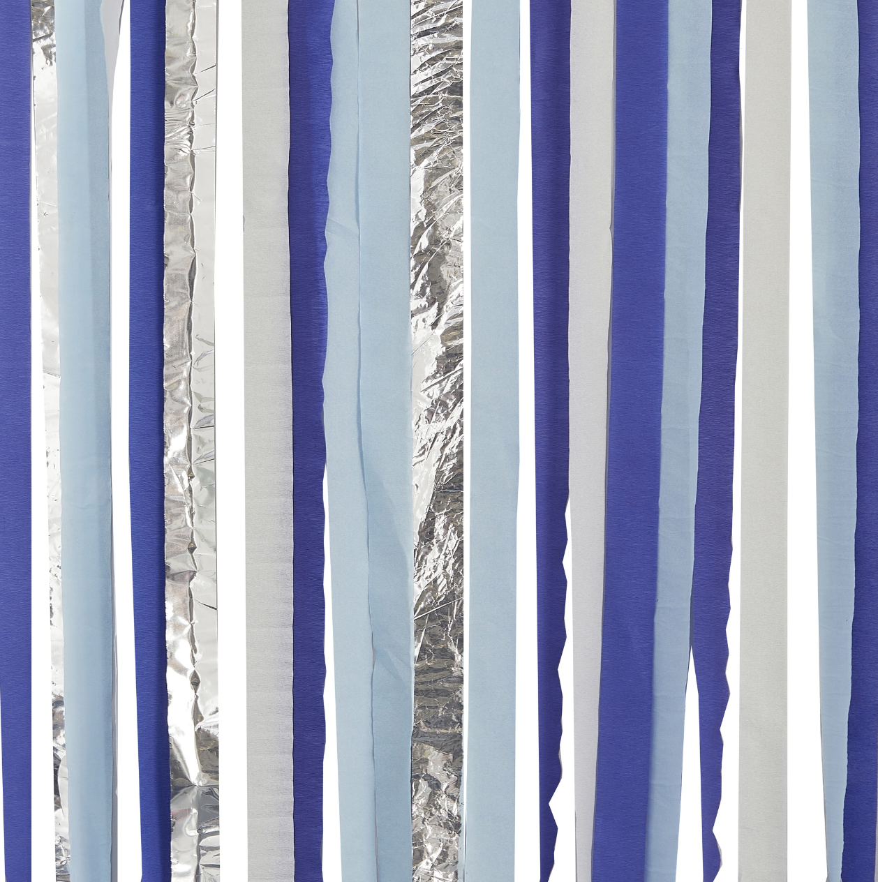 Create an electrifying atmosphere with our Blue and Silver Streamer Party Backdrop!
