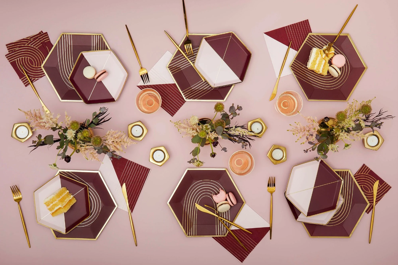 Deep maroon coupled with soft pink and chic gold stripes, the Bordeaux lunch napkin is highly versatile and can instantly add style to your next in-home party or outdoor celebration!