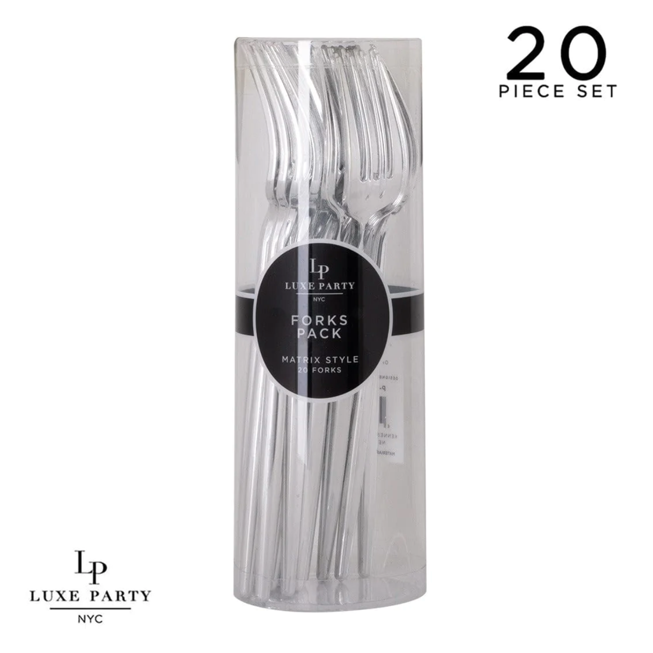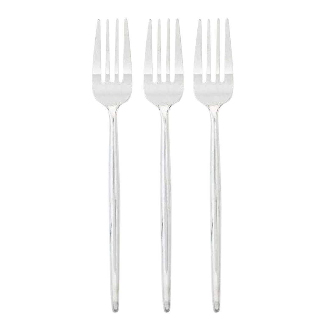 Chic Round Premium Plastic Silver Forks | 20 Pieces