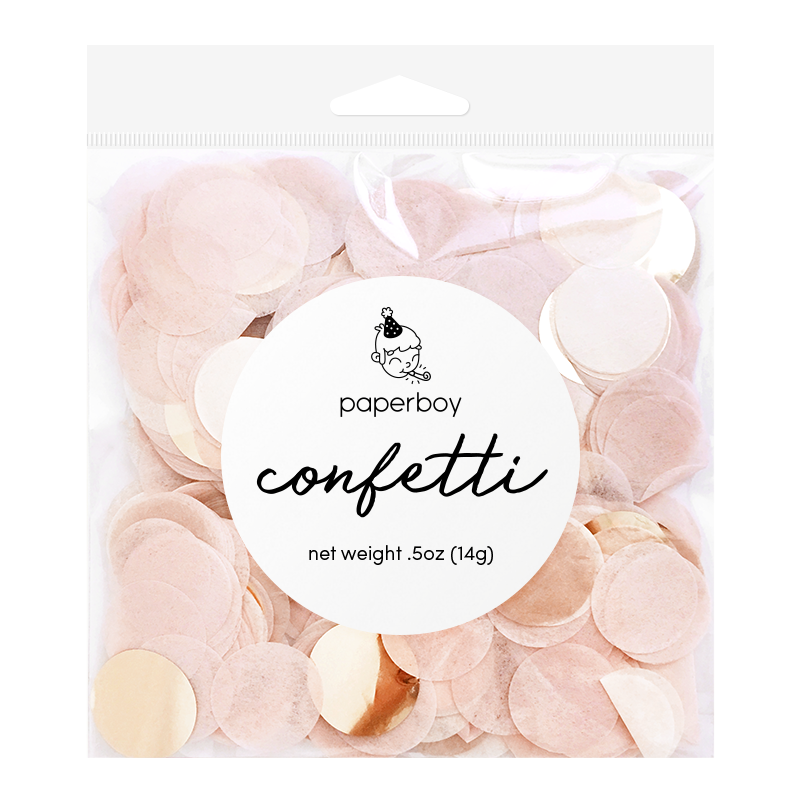 Tissue paper confetti in beautiful shades of blush pink and rose gold.