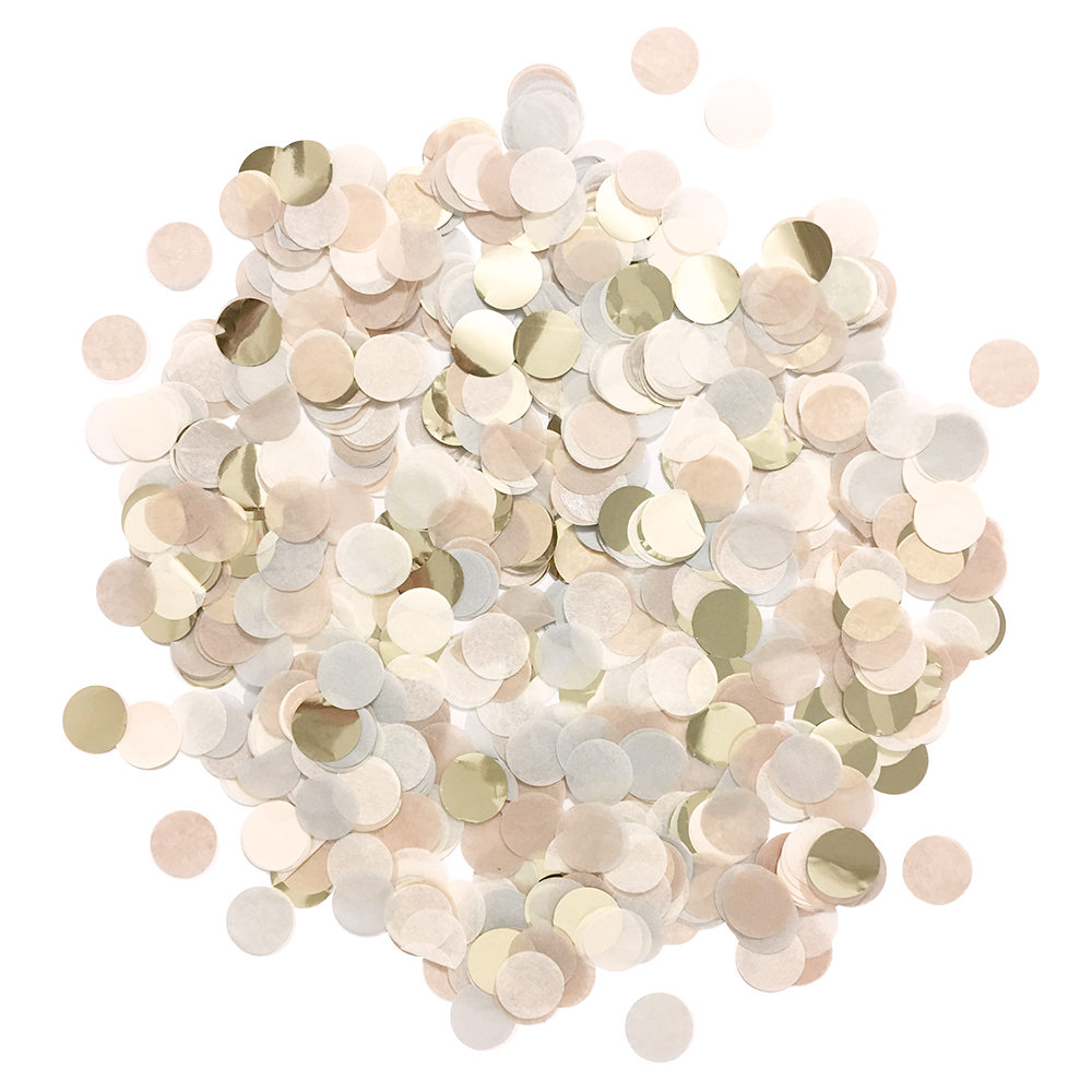 Tissue paper confetti in beautiful shades of champagne, neutrals, and gold.