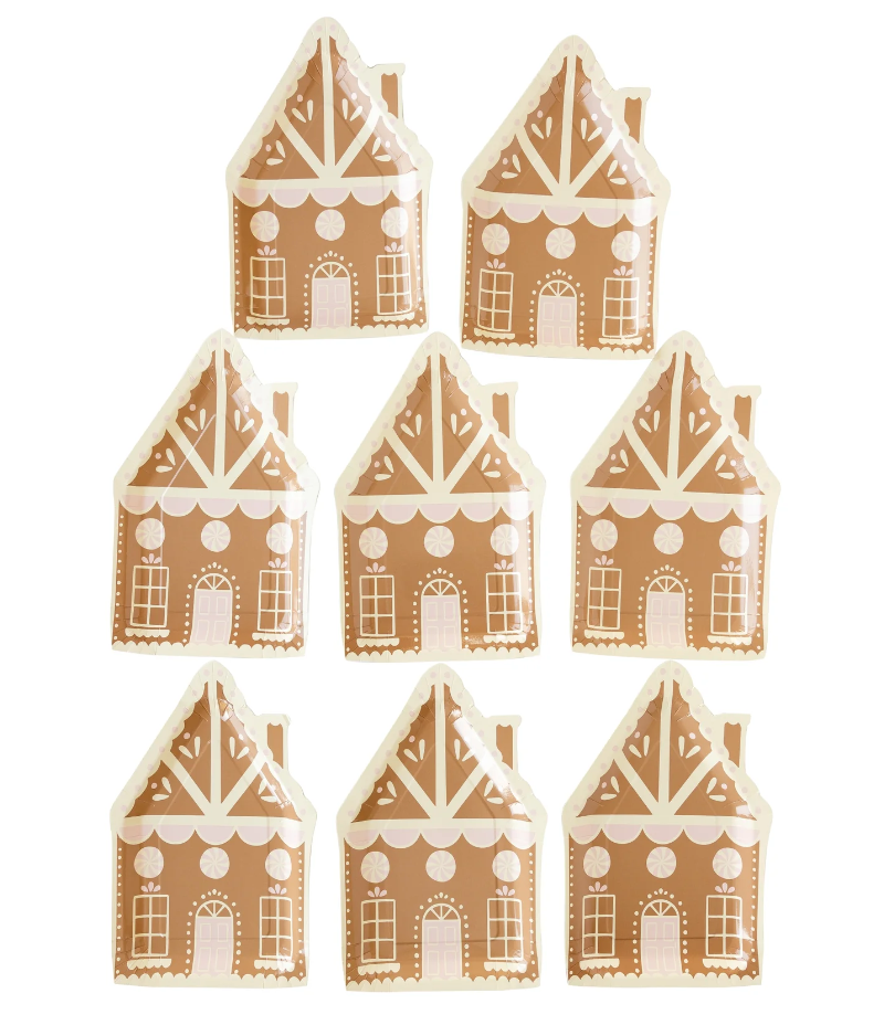 Create a cozy scene at the table this Christmas with these whimsical gingerbread house shaped plates.