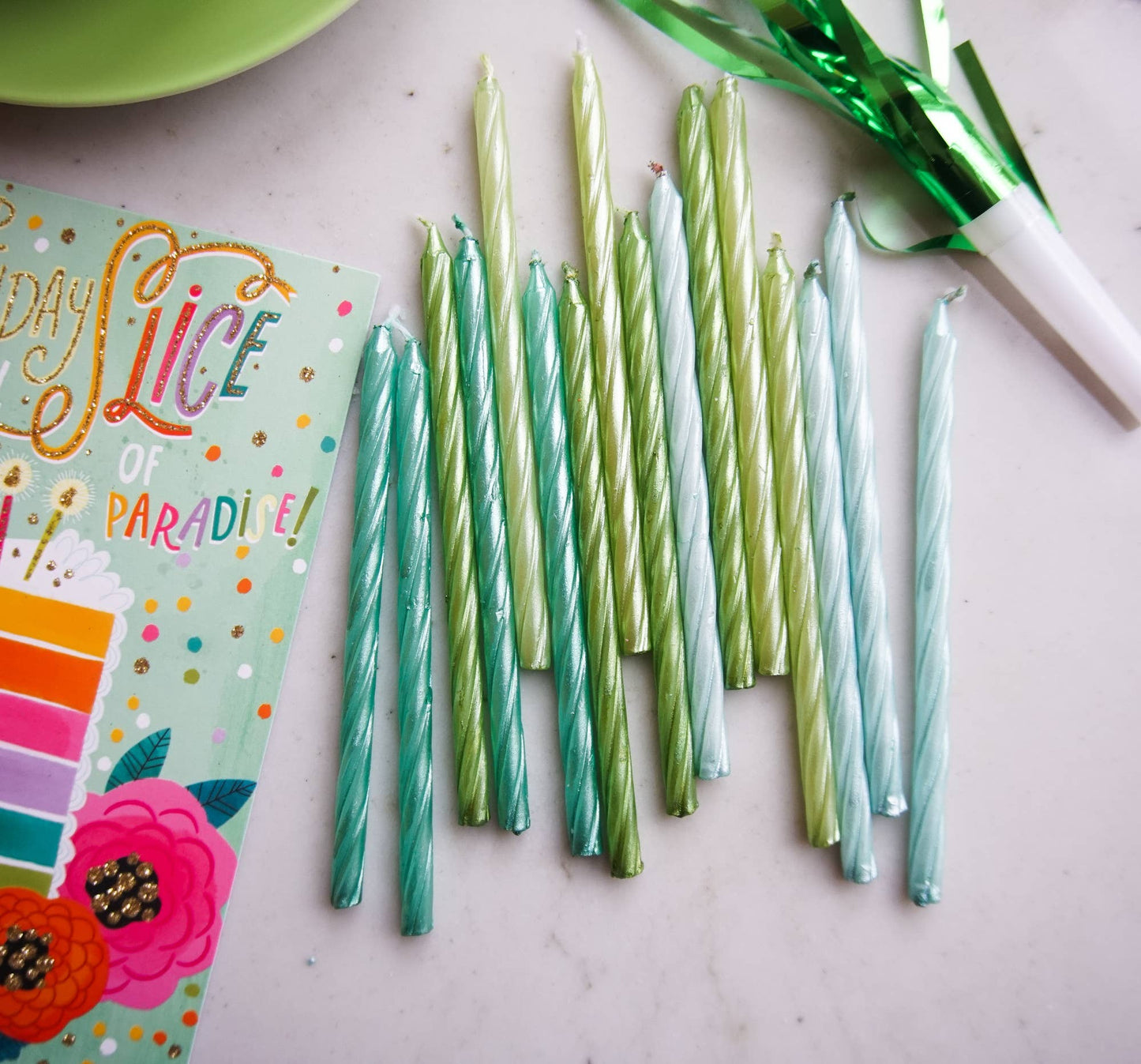 Green / Teal Ombre Pearl Spiral Tall Birthday Candle Set - 16pk