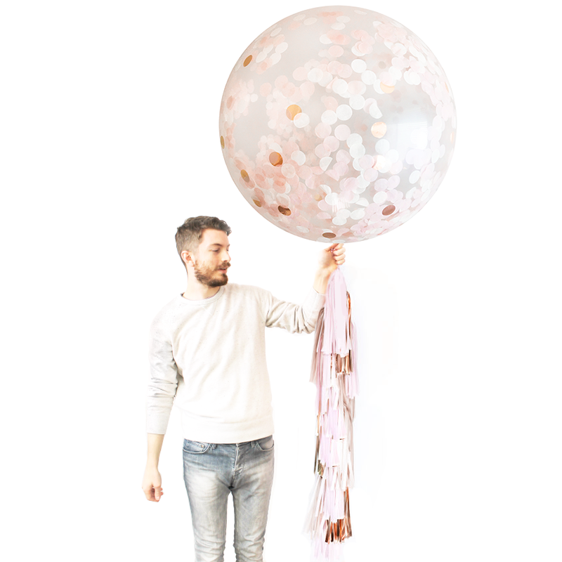 Jumbo Confetti Balloon & Tassel Tail - Blush & Rose Gold