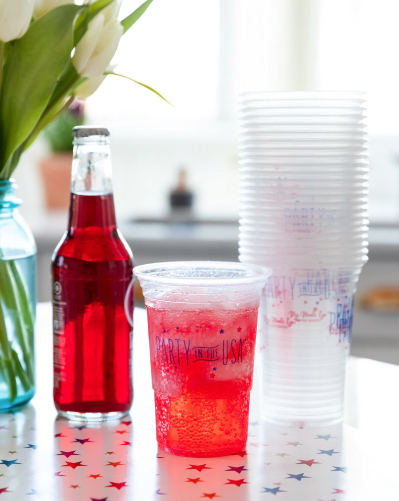 Featuring a bold "Party in the USA" message, these cups bring all the star-spangled spirit to your drink station. They're durable enough for everything from lemonade to cocktails, and disposable for easy cleanup once the fireworks fade.