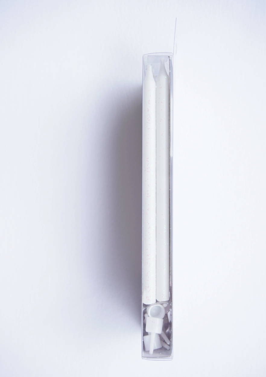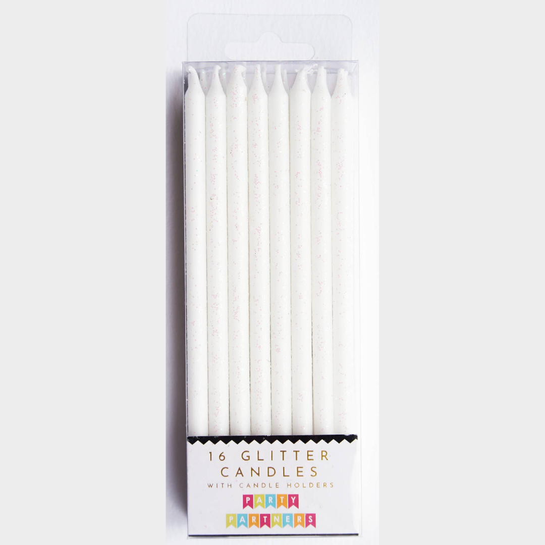 Tall White Glitter Birthday Candle Set - 16pk