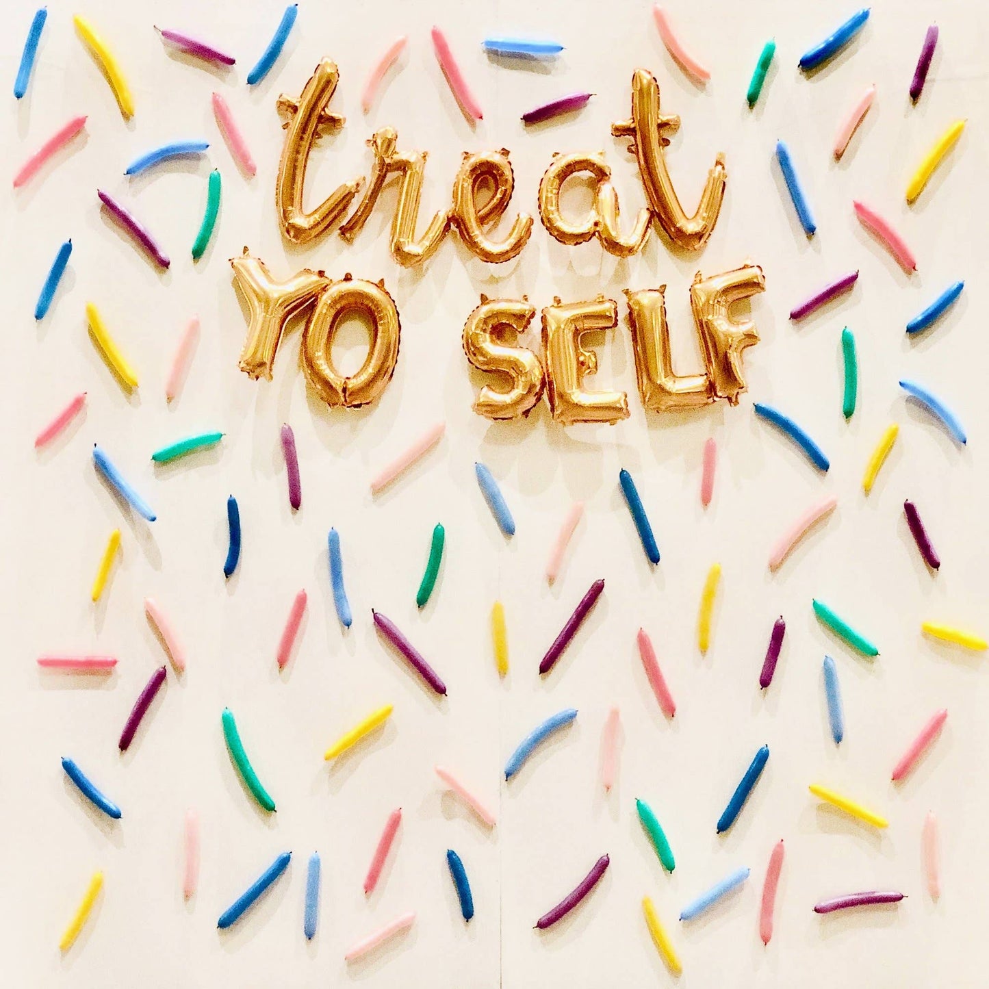 Get ready to "Treat Yo Self" with this eye-catching Balloon Wall Kit! Our DIY Treat Yo Self Balloon installation kits are an easy step by step way for you to make your own festive decor for your private parties! Designed and curated by Badass Balloon Co artist Desiree, these chic little DIYs are as easy as inflating your balloons and fixing then onto our installation strip and hanging in the perfect Instagram worthy spot!