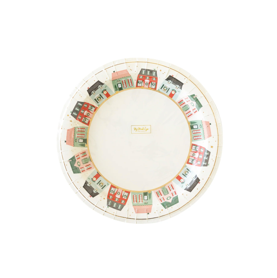 This holiday season, transform your dining table into a festive winter wonderland with our Christmas Village Large 10" Round Paper Plates! 🎄✨