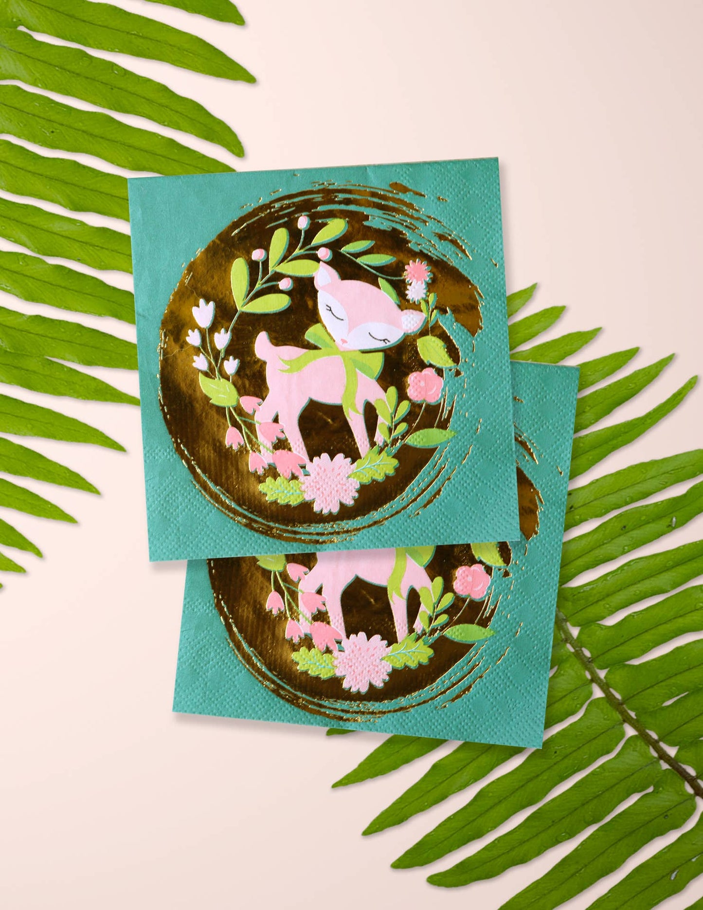 The prettiest party napkins with darling woodland animals, perfect for a baby shower, a birthday party, or a tea party! Features gold foil, and coordinates perfectly with other items from our Woodland Animals collection.